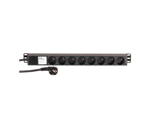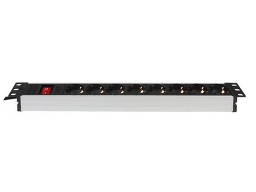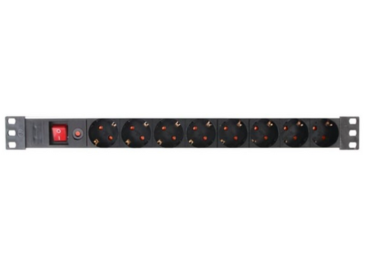 Unidade distribuição de corrente 19 "/ 1 U Iluminado switch 2 pólos no painel frontal 8 alimentação Schuko de saídas no painel traseiro 16A/250 V A...