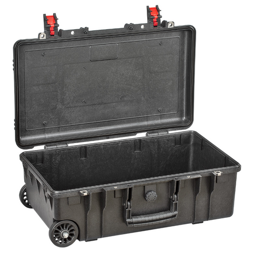 Heavy duty cases with wheels and telescopic handle. Sealing o-ring and removable lid. Available empty or with layers of pre-cubed foam in the botto...