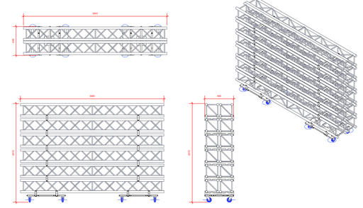 The Tour truss Dolly system allows trussing to be easily and securely loaded onto castor boards and stacked together using notched interfaces for s...
