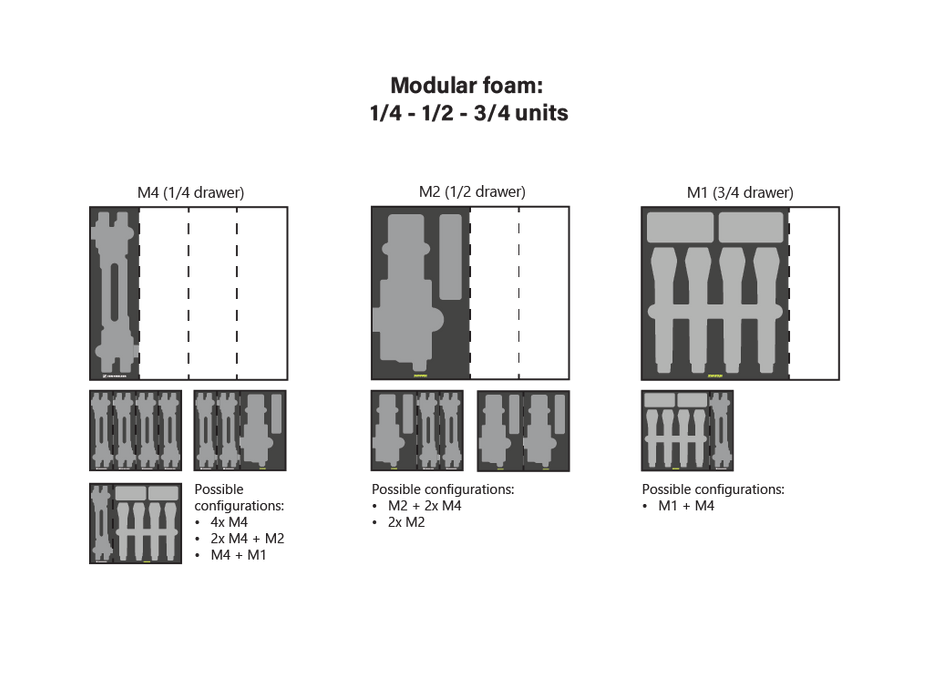 Store and transport all individual pieces from wireless system neatly and well protected 1/2 Foam part of drawer LD33 foam + PVC Modular Foam for ...